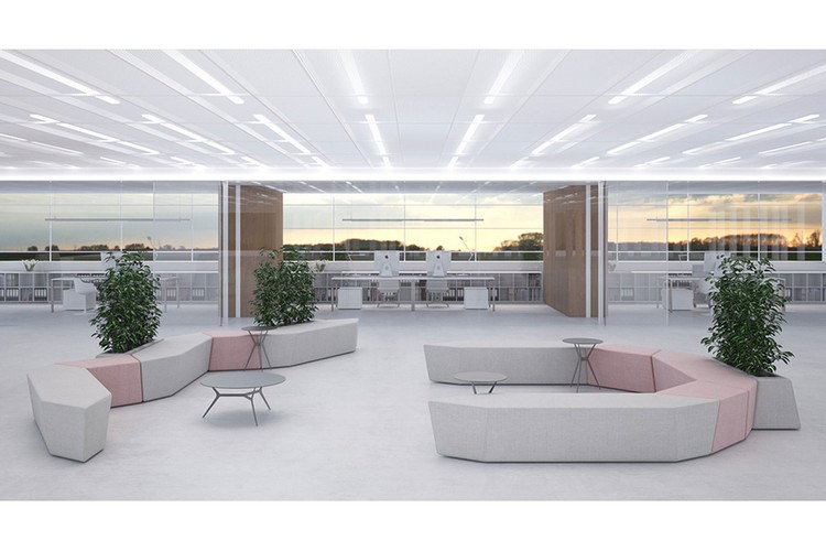 В данном дизайн-проекте была использована мебель Narbutas от литовского производителя. С помощью неё удалось подчеркнуть красоту двухуровневого пространства. Оно заиграло новыми красками, а солнечный свет привнёс отдельный штрих в дизайн интерьера офиса.